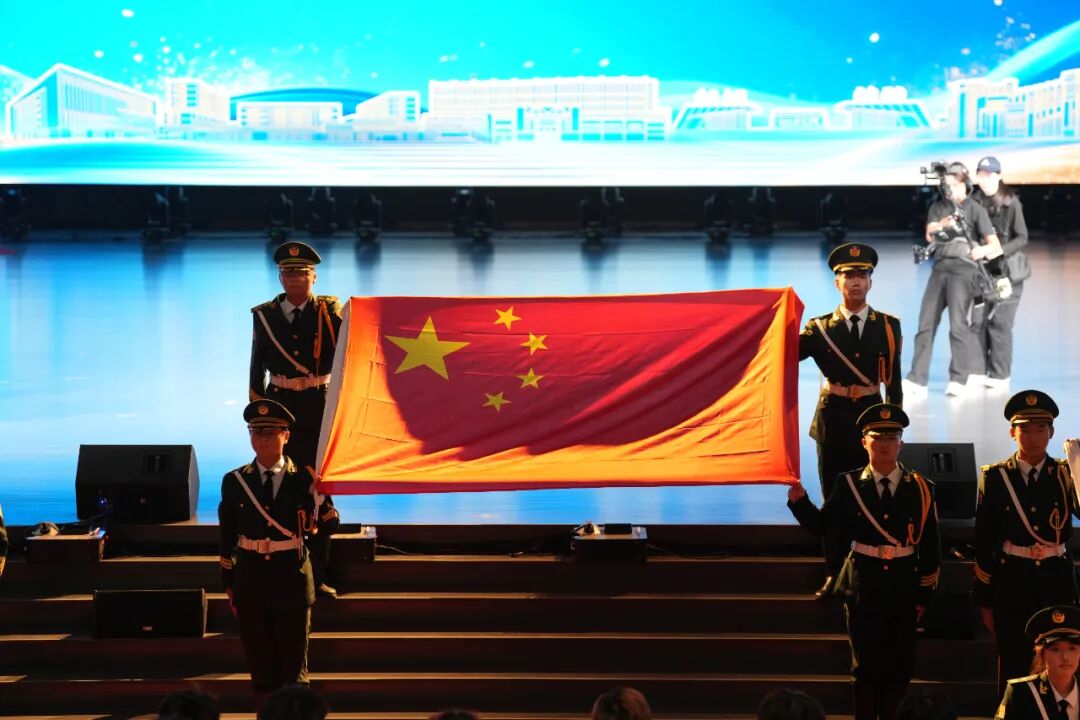 升旗仪式庆典伊始,由学校国旗护卫队护送国旗、校旗入场,活动在庄严的国歌声和底蕴深厚的宣传片《芳华》里拉开序幕。