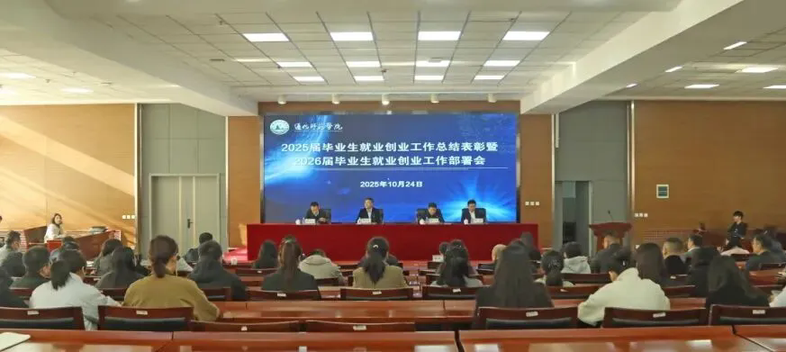 (新闻网讯 招生就业处报道)为深入贯彻习近平总书记关于就业工作的重要论述,落细落实党中央、国务院和省委、省政府关于高校毕业生就业创业工作的决策部署,促进毕业生高质量充分就业,10月24日,学校在第八教学楼208会议室召开2025届毕业生就业创业工作总结表彰暨2026届毕业生就业创业工作部署会。党委书记郑伟峰出席会议并讲话。党委副书记、校长朱俊义主持会议。