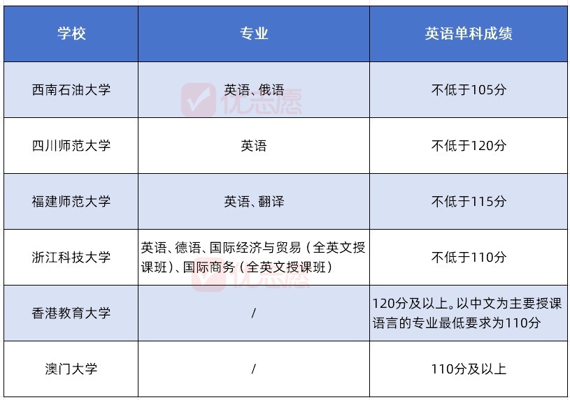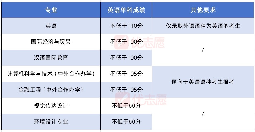 除了上述院校外,还有以下高校对英语专业及相关专业的高考外语单科成绩有明确要求: