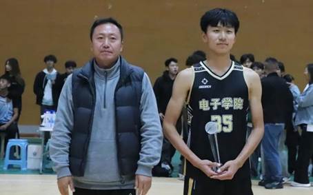 体育教研室教师郭鹏为本场获得MVP球员刘志辉颁奖。