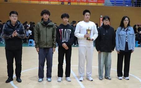 团委书记曹蒙春为亚军计算机与信息技术学院篮球队颁奖。