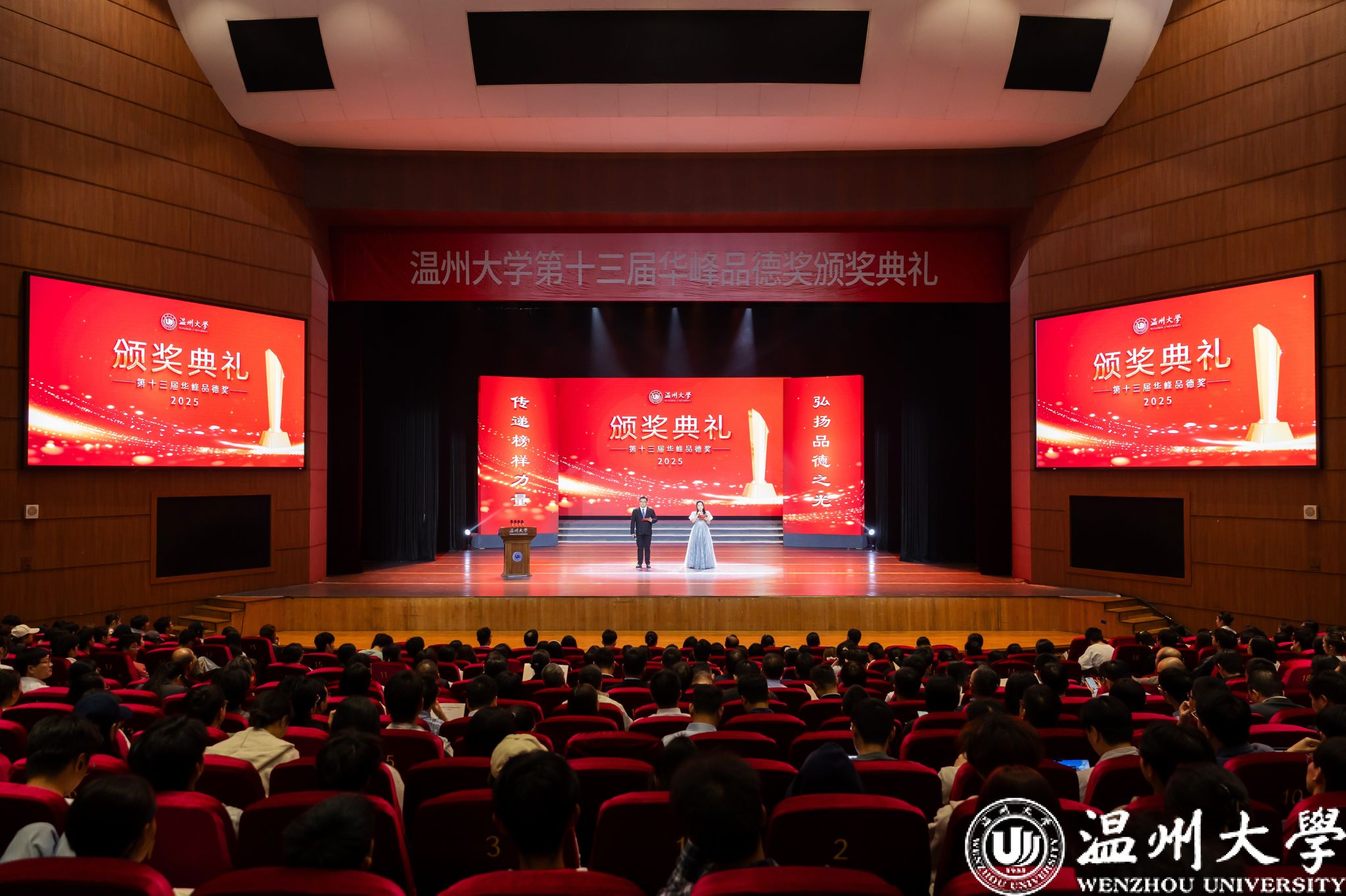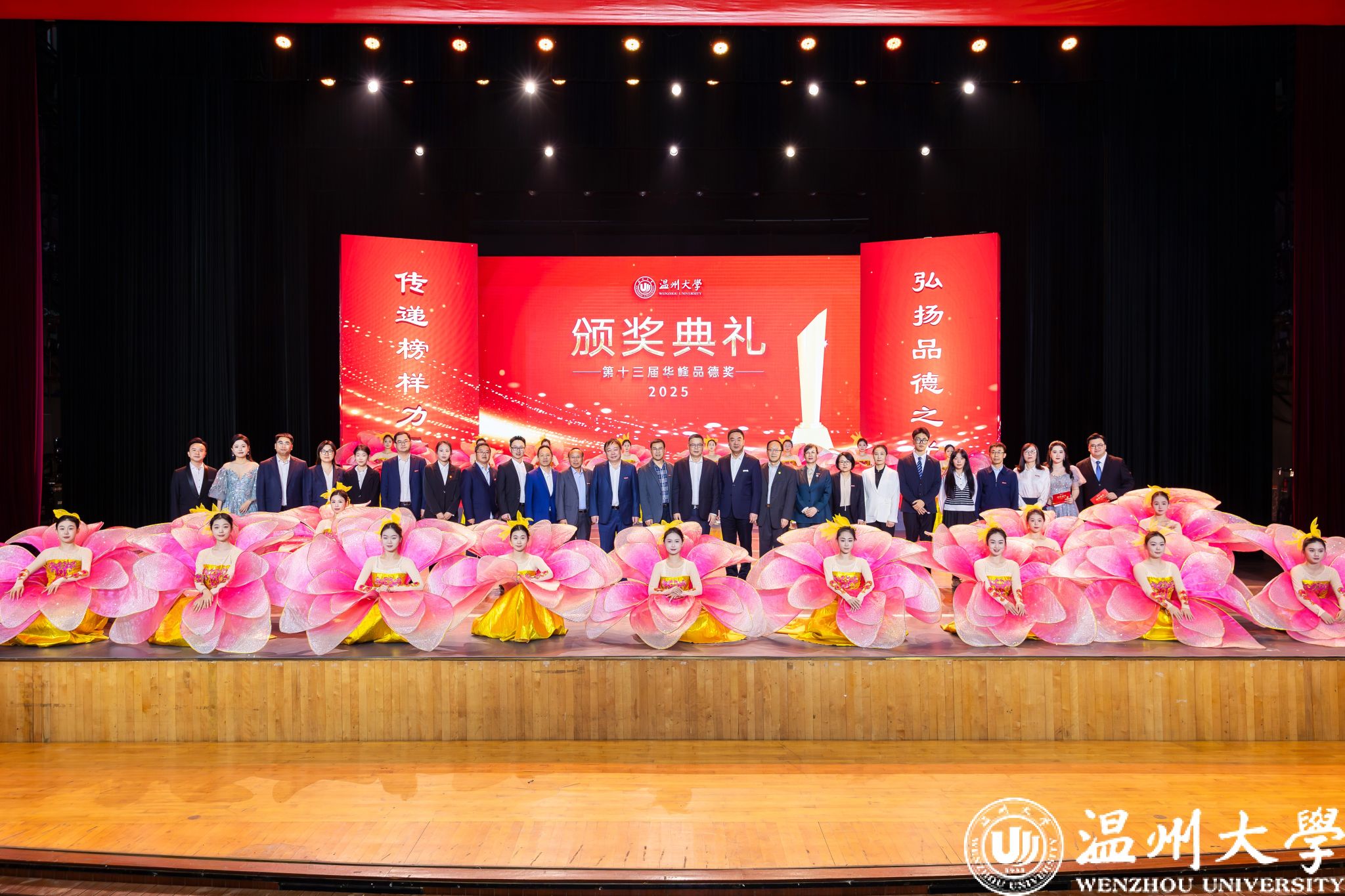 自2012年以来,华峰集团累计捐资2000万,支持温大打造“华峰品德奖”育人品牌,至今这一奖项已陪伴温州大学走过十三载。十三年间,学校累计表彰132组品德模范个人与集体,覆盖教师、学生、管理服务人员及团队,成为校园文化的“金色名片”。