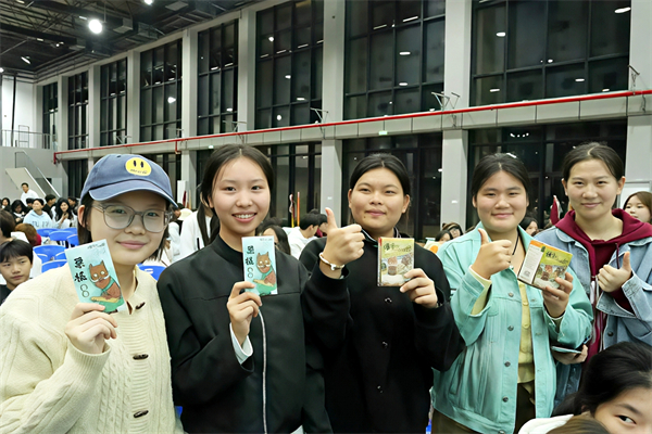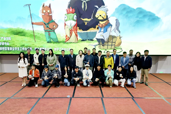 《浪浪山小妖怪》主创团队与天工产业学院学子合影。
