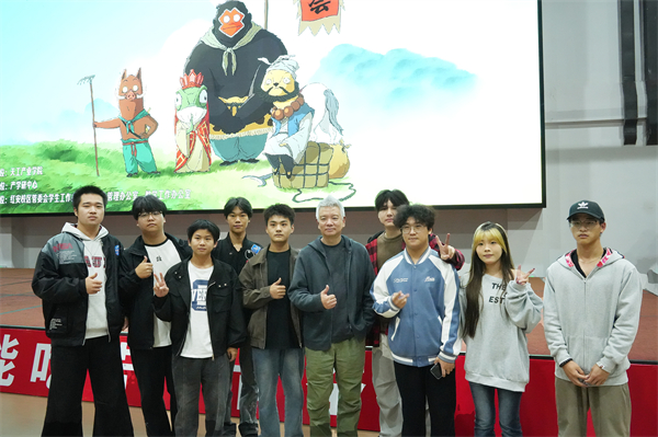 在创作分享中,陈廖宇、邓久益、李军三位主创人员分别从故事创作、角色设计、技术实现三大维度,结合影片创作中的鲜活案例,深入剖析动画电影从构思到落地的全过程。他们用专业见解与独到视角,生动展现了动画创作背后的艰辛付出与艺术乐趣,让在场师生直观感受到国产动画的创作魅力与匠心精神。