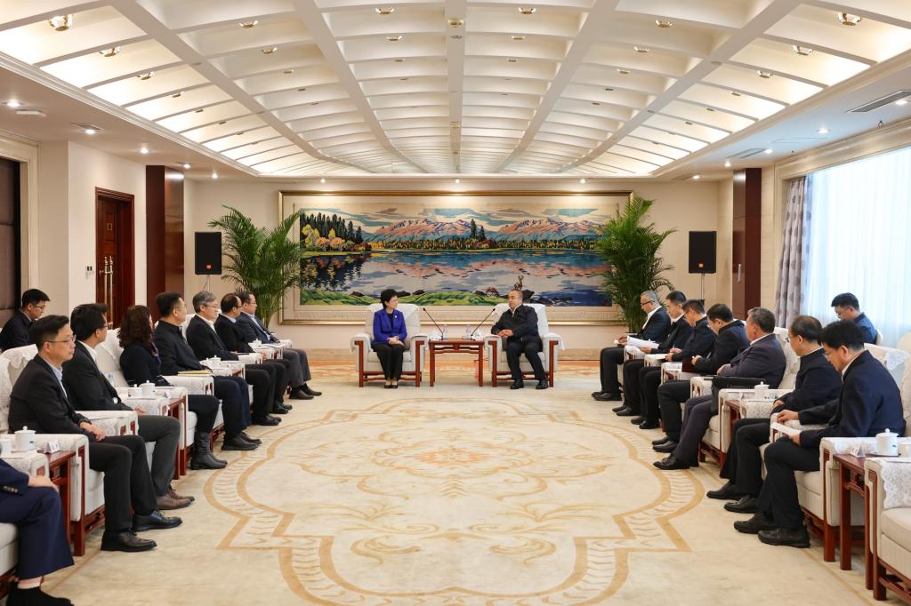 徐坤介绍了学校的基本情况及在产教融合、教育数智化、文化科技融合等方面的最新进展。他表示,北邮高度重视对口支援工作,近年来,正逐步推动优质教育资源向西部辐射。下一步,学校将充分发挥信息科技特色优势,围绕“一带一路”、数字经济、文化旅游等重点领域,与新疆联合建设高水平科研平台和人才培养基地,协同开展科技创新,推动科技成果转化,为新疆高质量发展提供科技支撑和人才保障。