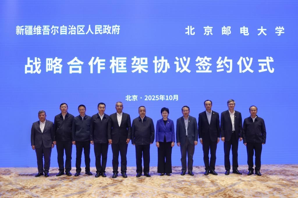会上,凯赛尔·阿不都克热木和徐坤分别代表双方签署了《新疆维吾尔自治区人民政府 北京邮电大学战略合作框架协议》。根据协议,双方将本着“资源共享、优势互补、互惠共赢、共同发展、依法依规”的原则,把新疆维吾尔自治区的区位、特色资源、产业政策优势与北京邮电大学的教育、科技、人才优势相结合,构建战略合作关系和长效合作体系,助力北邮“双一流”建设、助推新疆高质量发展,共同服务国家重大战略。