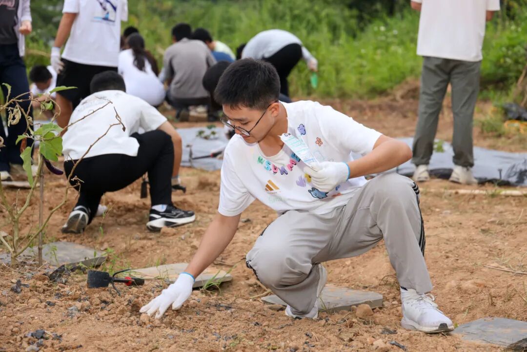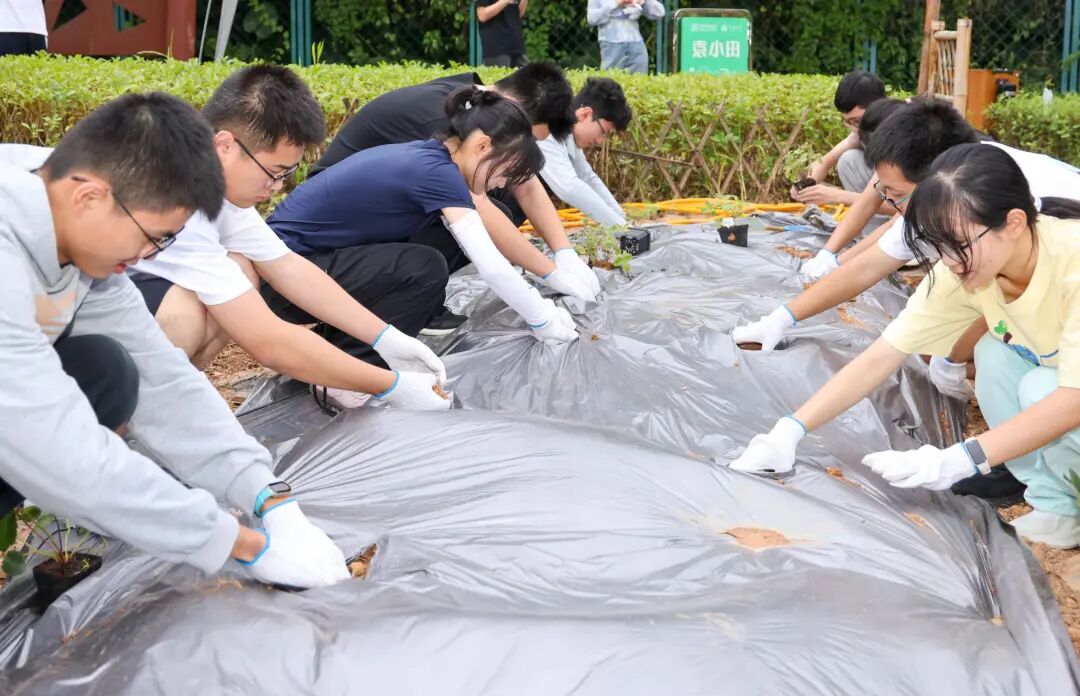 田垄间,有的同学负责播种,有的同学记录种子品种与种植位置,还有的同学忙着清理杂草、修整排水沟。