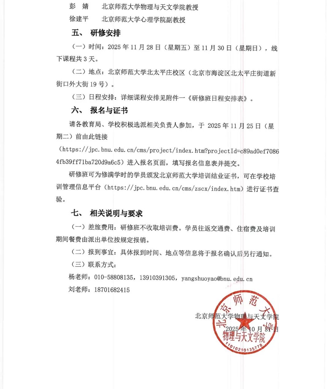 关于举办“北京师范大学基础学科拔尖创新人才培养高端研修班(第三期)”的通知(邀请函)
