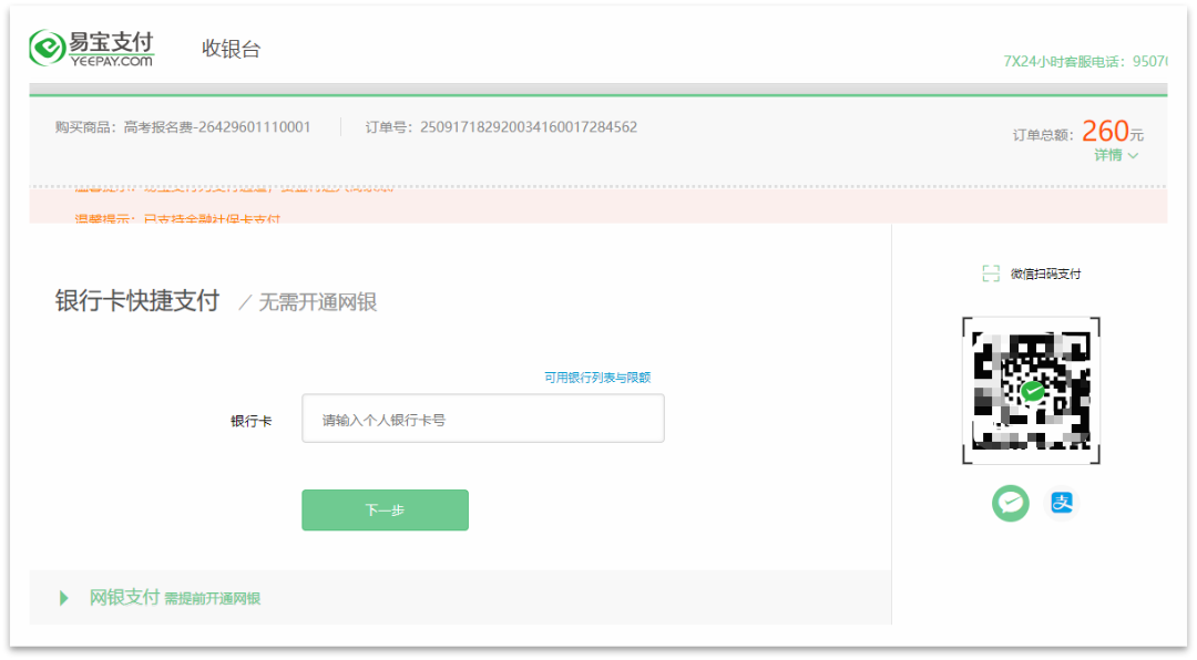 对于需要报名后缴纳报名费的全国统考、技能高考考生,需要在报名开始前准备好在线支付方式,可使用微信、支付宝、银行卡方式支付。