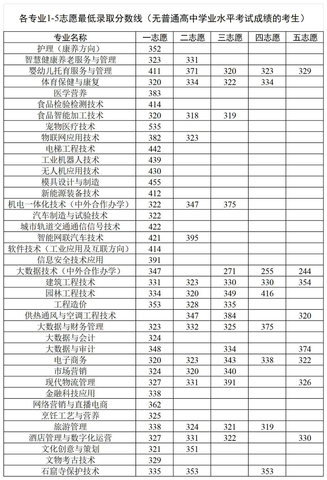 洛阳职业技术学院2025年单招各专业最低录取分数
