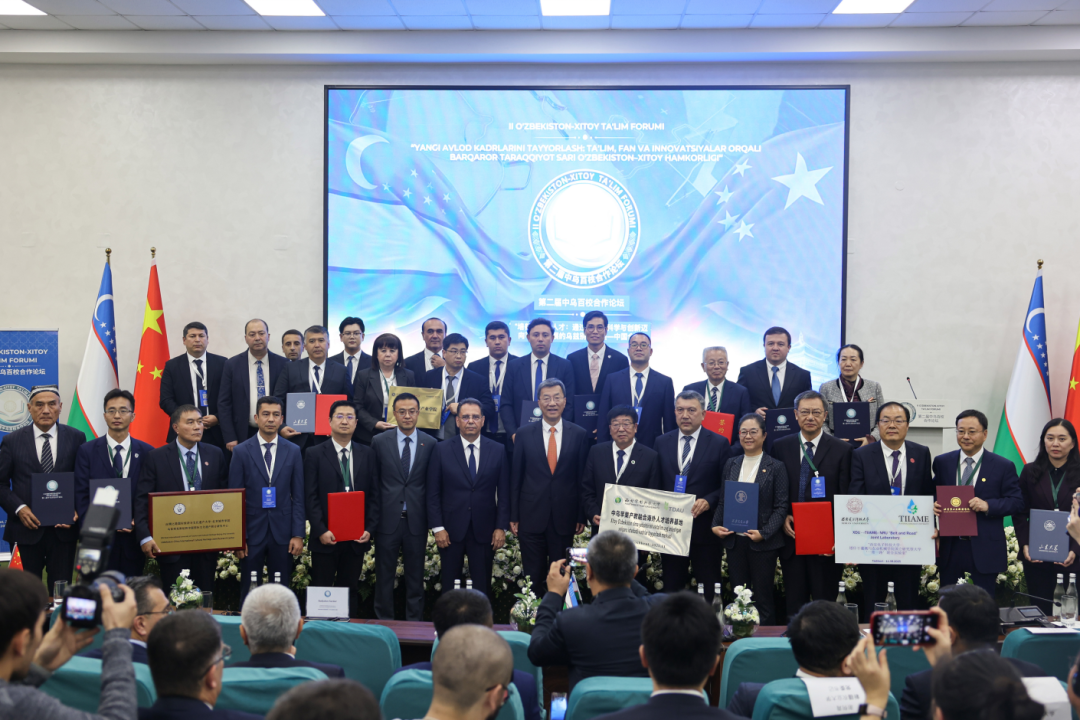11月2日至3日,第二届中乌百校合作论坛在乌兹别克斯坦首都塔什干举行。教育部部长怀进鹏与乌兹别克斯坦共和国高等教育、科学和创新部部长孔格拉特拜·沙里波夫出席论坛并致辞。