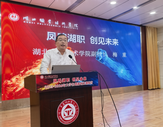 (本网讯 黄灿)11月5日下午,湖北职业技术学院2025—2026年 “凤鸣湖职,创见未来”大学生创新训练营开营仪式在西区学术报告厅隆重举行。学校党委委员、副校长梅重,各学院学工负责人、特邀嘉宾、导师团及200余名学员参会,共同启动系统化、实战化双创培养计划。活动由招生与就业创业指导处副处长王宇阳主持。