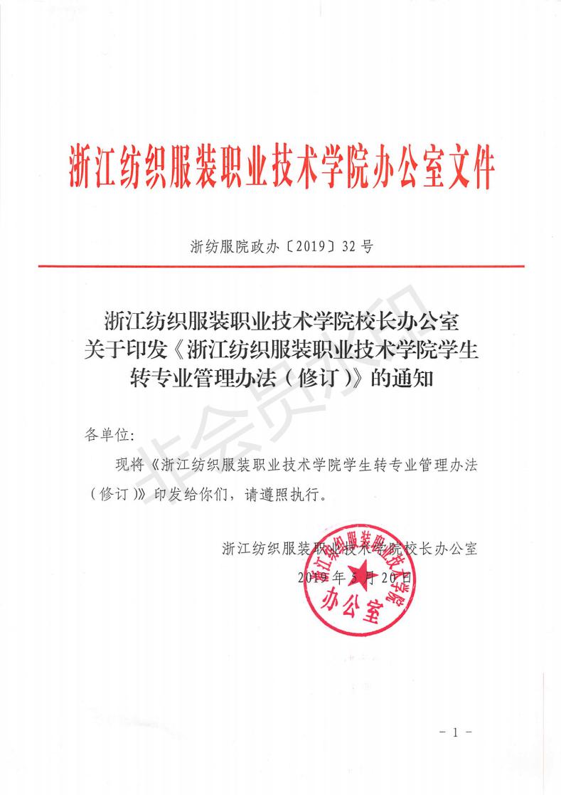 学生转专业管理办法(修订)(浙江纺织服装职...