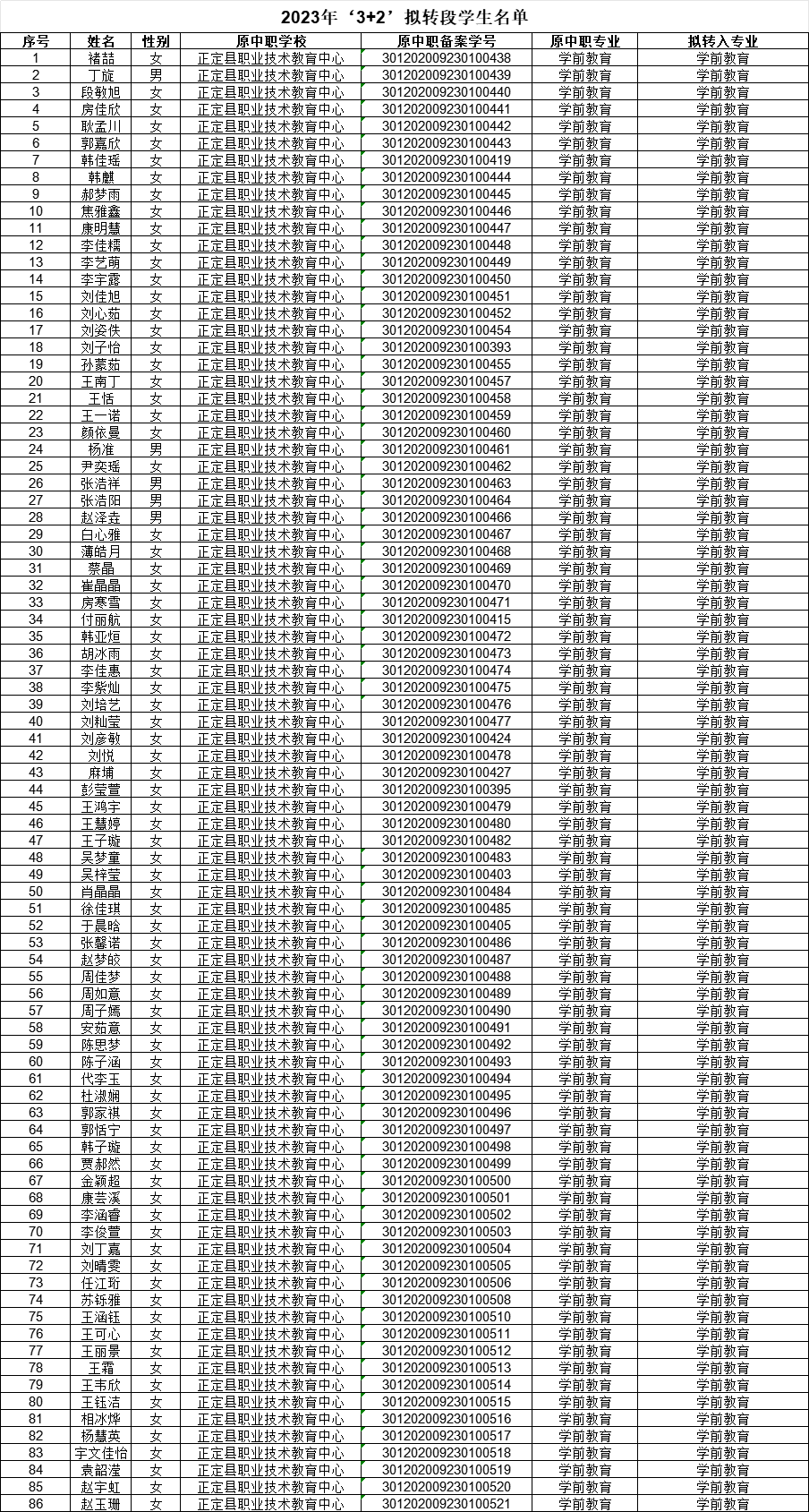 根据工作要求,为确保考生权益,现将“3+2”拟转段学生名单予以公示,公示时间7月21-27日,有疑问请咨询招生就业处03105586666