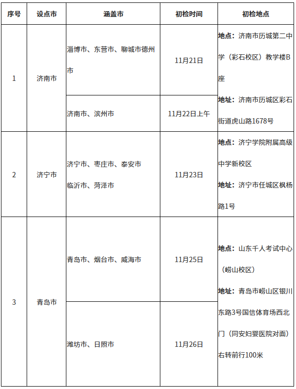 注:各初检地点初检工作开始时间为每天8:30,结束时间由各招生高校根据实际情况确定。考生如因故错过本市初选,可自行前往其他初选站参检。