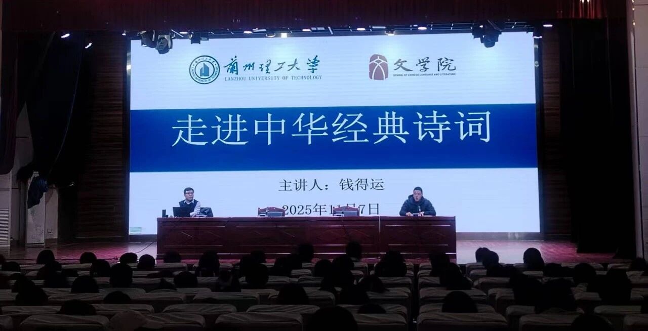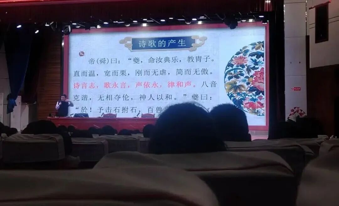 钱得运副教授围绕中华经典诗词多维度内涵展开讲座,结合经典文献、历史典故与诗词案例,系统阐释诗词起源与早期形态、社会功用与价值、核心创作手法等内容 —— 既引《尚书》“诗言志,歌永言” 追溯诗歌起源,借《论语》“《诗》可以兴,可以观,可以群,可以怨” 解析诗词多元功能,又聚焦 “赋、比、兴” 创作技法,提炼诗词对个体成长的五大价值,还以杜审言《和晋陵陆丞早春游望》逐句解析意境之美。现场学生专注聆听、认真记录,不少同学表示,讲座让自己更懂诗词背后的文化内涵与美学价值,也激发了深入学习中华经典的兴趣。