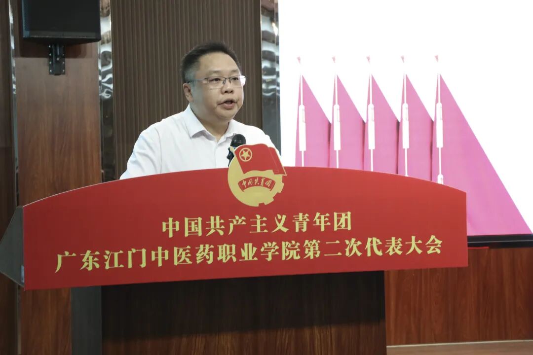 10月29日,共青团广东江门中医药职业学院第二次代表大会在学术报告厅隆重召开。团市委书记李金元,校党委书记蒋业洲,校党委副书记、纪委书记王勇,副校长欧阳能,校党委委员、党政办公室主任常陆林,团市委组织部负责人梁凌致等出席开幕式。兄弟院校团委相关负责人,学校各相关职能部门、各二级学院负责人到会。全校各级团组织代表齐聚一堂,共商学校共青团发展大计,共绘青春建功蓝图。