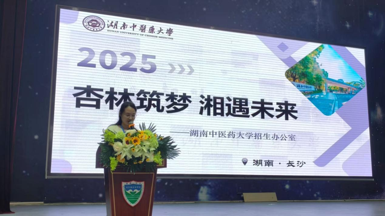 2025年11月8-9日,湖南教育博览会“高校进高中”活动在长沙成功举办。我校招生团队先后走进长沙县第一中学、同升湖高级中学、明达高级中学及东雅中学,为高中生带来了一场融合传统与现代的中医药特色升学指导。