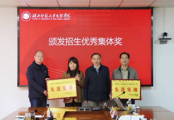 会议对2025年招生就业工作中表现突出的先进集体和个人进行了表彰,校领导为获奖集体颁发奖牌。
