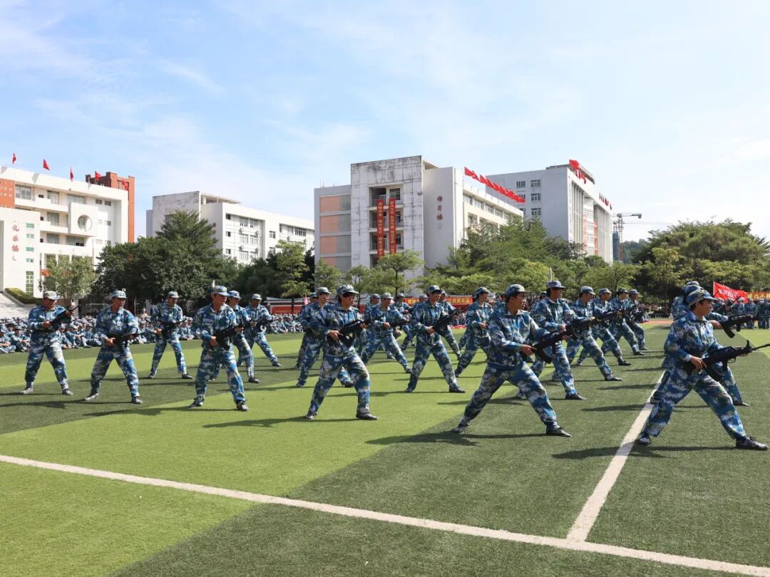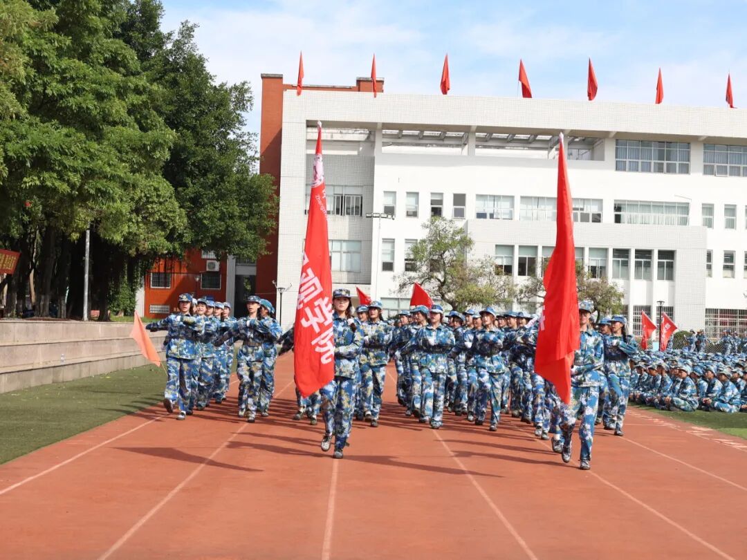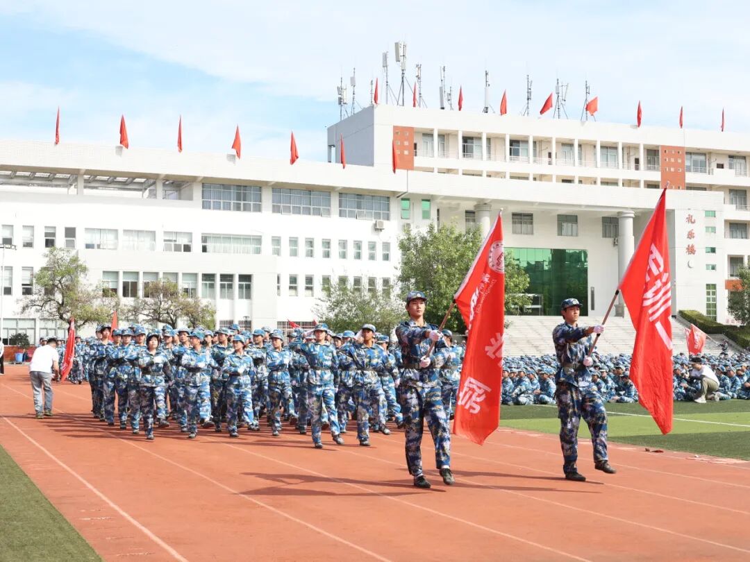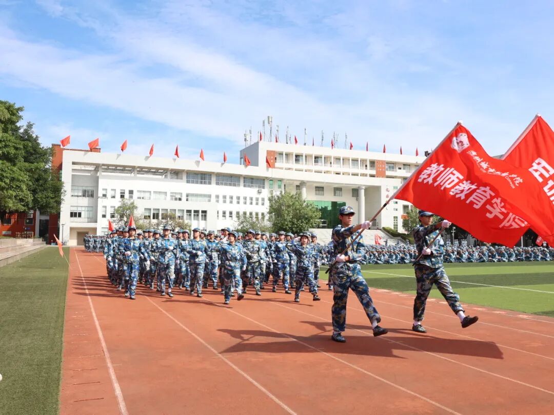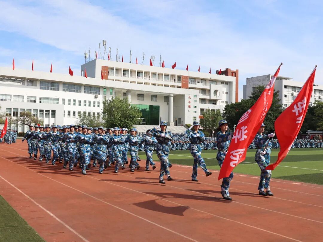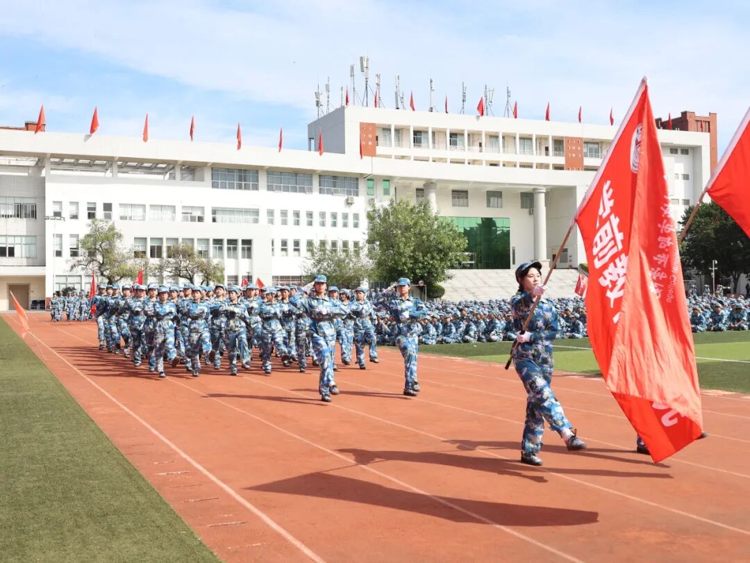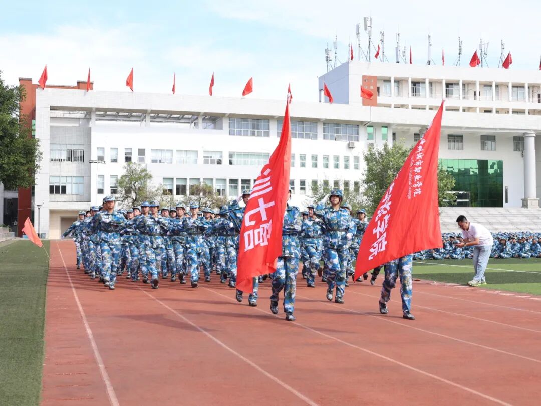 各二级学院方队迈着铿锵有力的步伐,依次精神抖擞地通过主席台。同学们军容严整、姿态挺拔,眼神坚定、口号震天,每一个步伐都凝聚着汗水与坚持,每一声呐喊都彰显着青春与担当,充分展现了两周军训磨砺出的过硬作风和良好精神面貌。