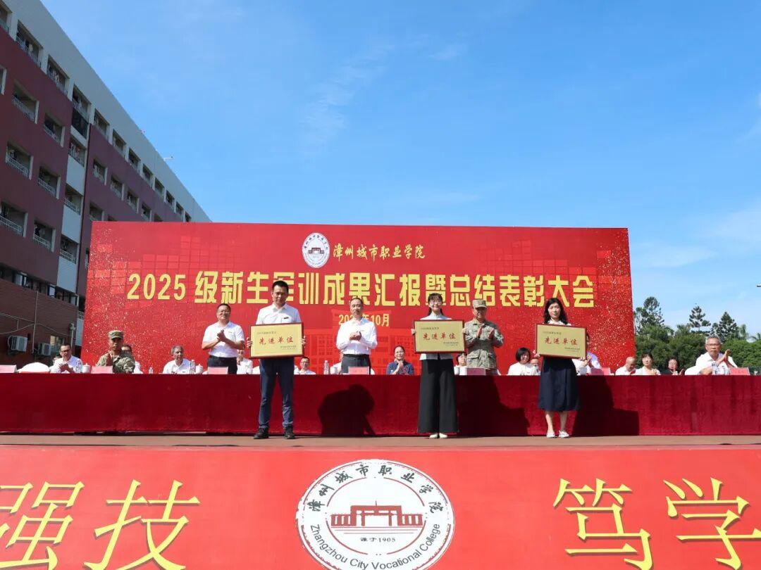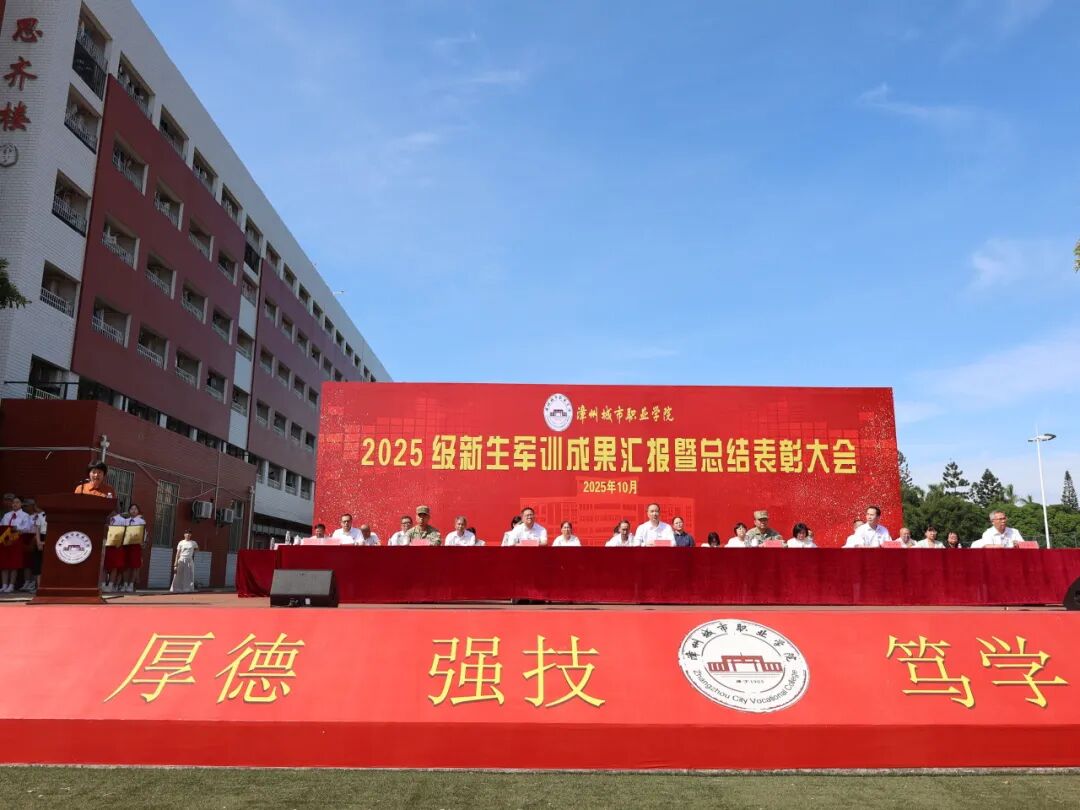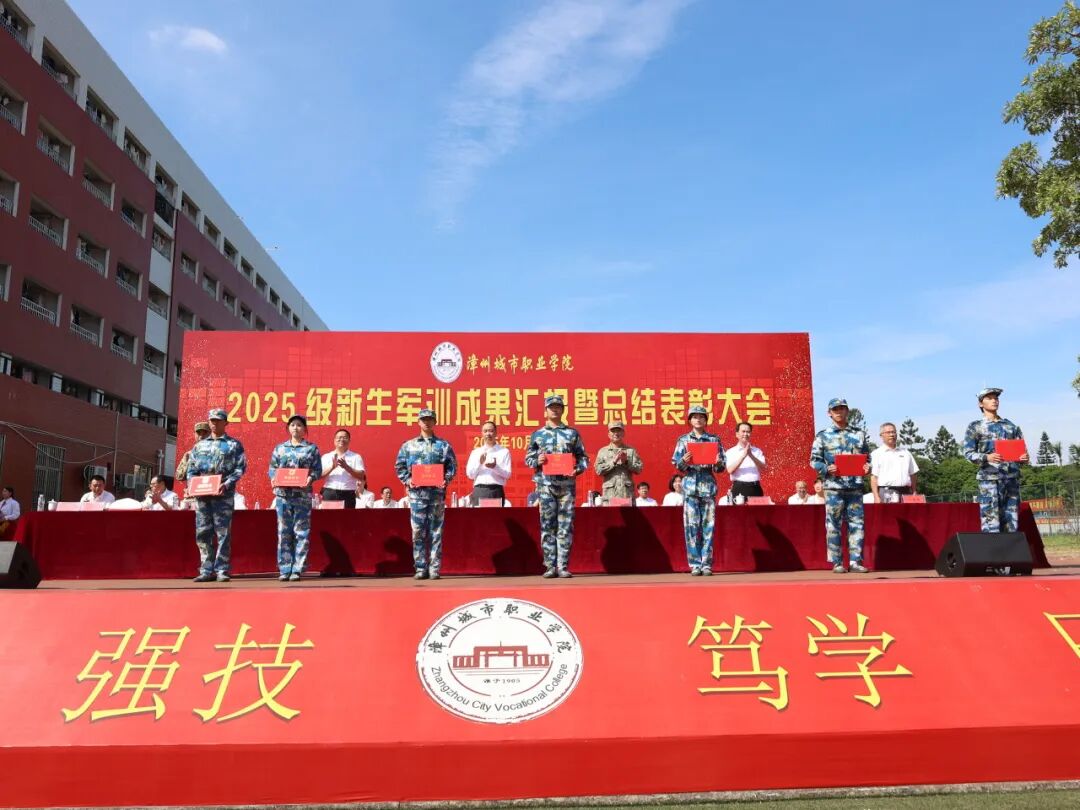旌旗飘扬,军歌嘹亮!2025年10月31日上午,漳州城市职业学院隆重举行2025 级学生军训成果汇报暨总结表彰大会,全面检阅为期两周的军训成果,充分展示我校青年学子“请党放心,强国有我”的壮志豪情与昂扬风貌。承训部队领导,漳城院党委副书记、校长翁文等党委委员出席大会。漳城院党委副书记李秀玲主持大会。