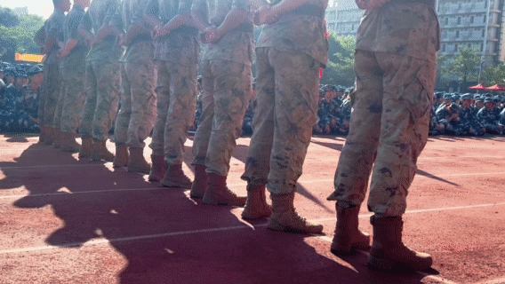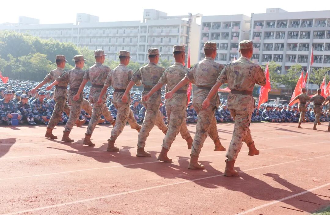 开训式上,承训教官们还进行了精彩的军事科目示范表演。他们整齐划一的动作、昂扬抖擞的精神,赢得了现场师生的阵阵掌声。