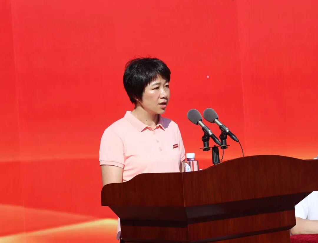 开训式在庄严的氛围中拉开帷幕。李秀玲向2025级新生军训团授旗,并宣布军训开训。