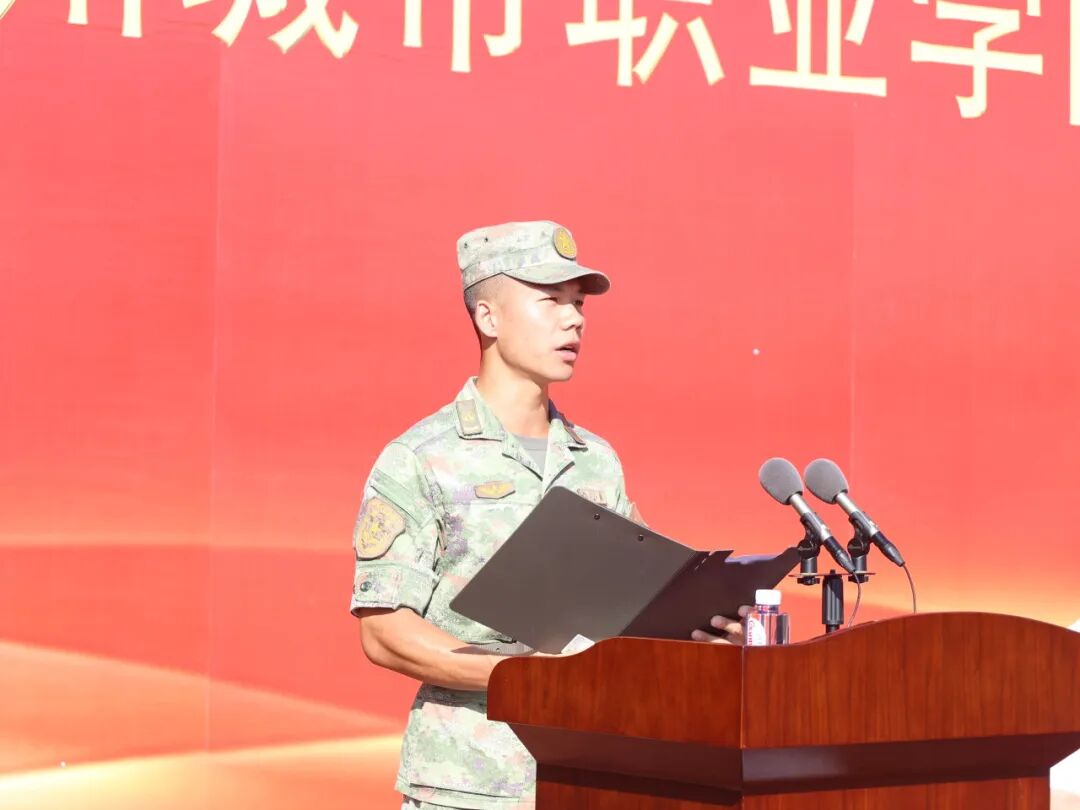 数字智能学院2025级人工智能专业阮伟灿同学代表全体参训新生表示,将服从指挥、严于律己,将军人纪律内化于心、外化于行;刻苦训练、磨砺意志,在汗水中提升综合能力;团结互助、昂扬向上,充分展现漳城院学子的朝气担当与新时代青年的风采。
