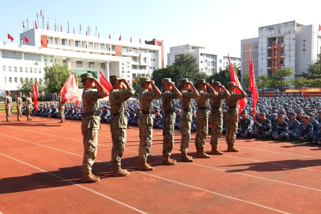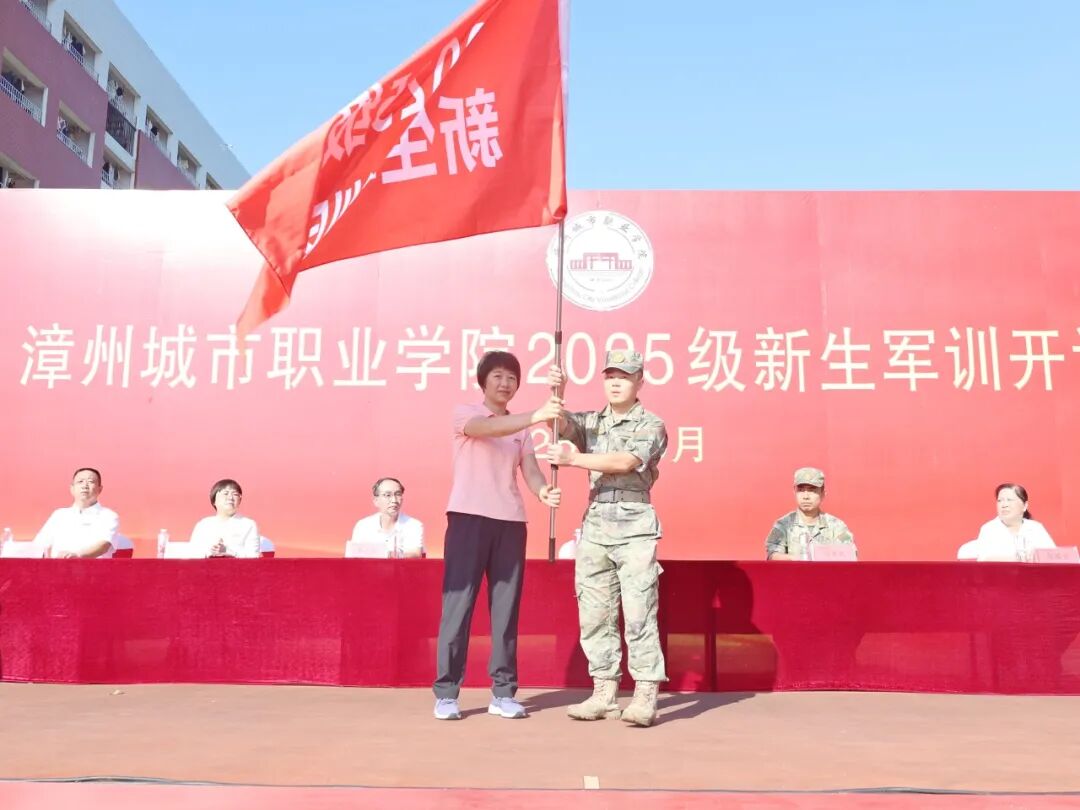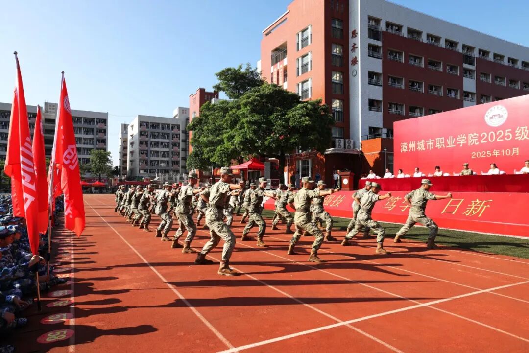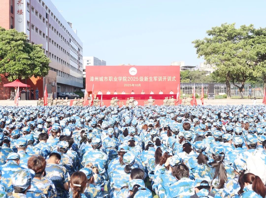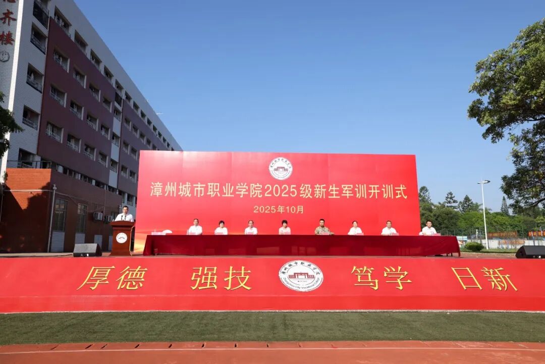 2025年10月18日,漳州城市职业学院2025级新生军训开训。学院党委副书记李秀玲、承训部队负责领导出席开训式,学生工作处(武装部)处长吴育清主持开训式。