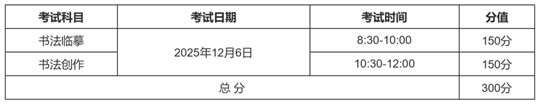 (9)书法临摹科目不允许提前交卷,考试结束铃响后,考生应立即停止作答,原地休整,不得离开座位或考场。待书法创作科目结束,监考员收回试题和答卷(宣纸)整理无误后,考生方可离开考场。