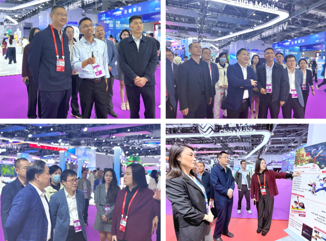 领导们细致参观了学院以“政产学研深度协同,共筑未来信息技术人才培养与科技创新双高地”为核心主题的四大特色展区,全面了解学院在政产学研协同育人、学科竞赛、科技创新和社会服务等方面的丰硕成果。