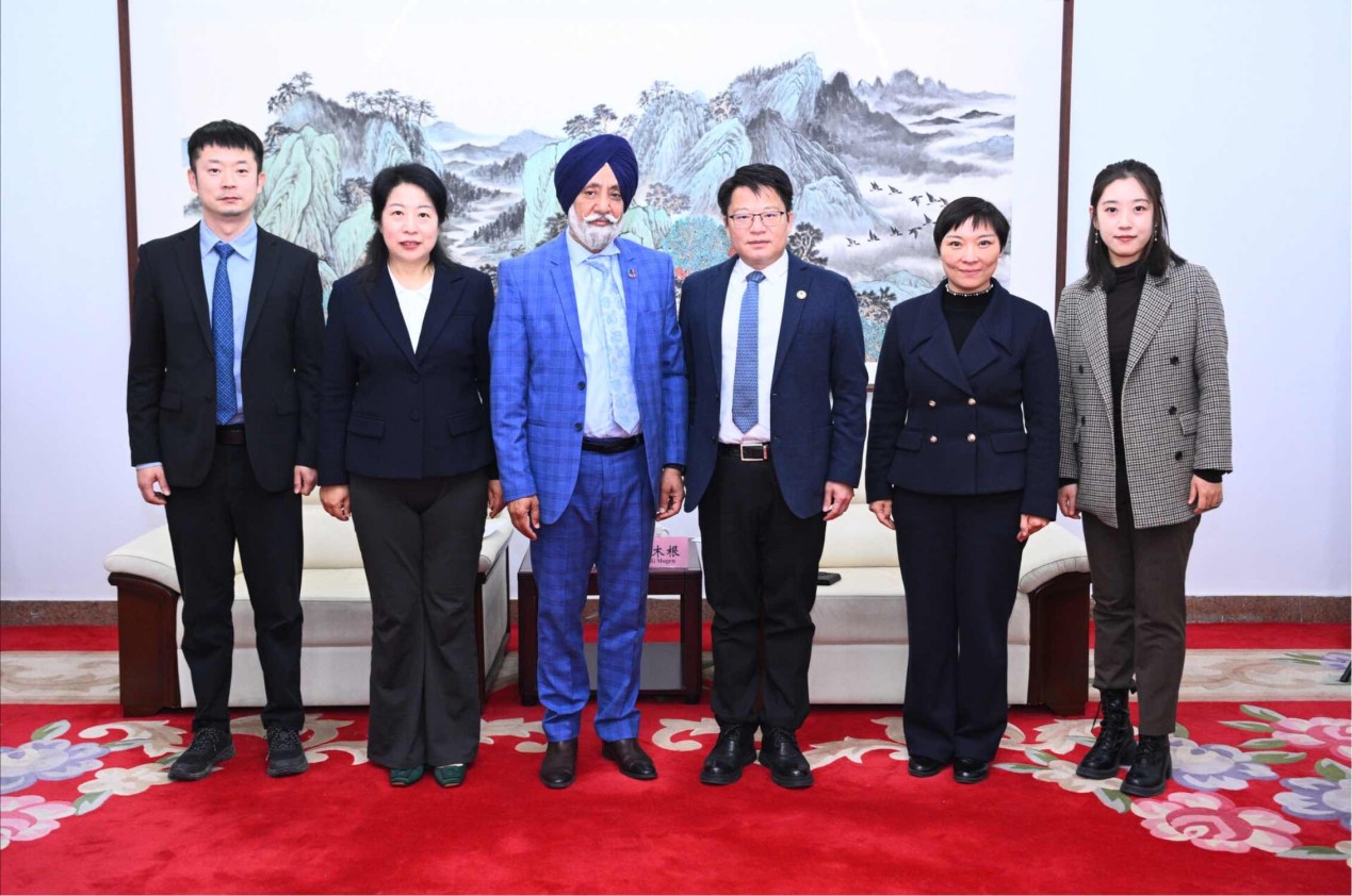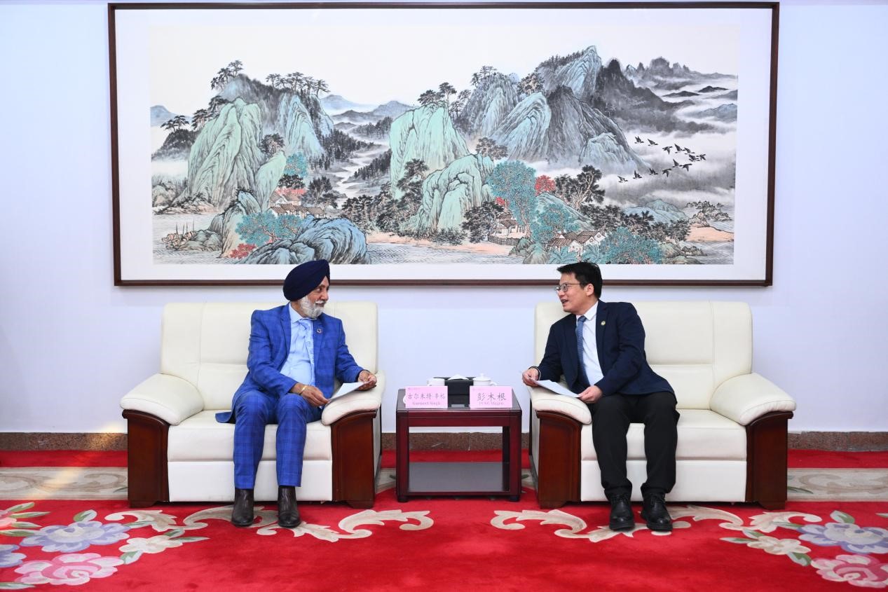彭木根对古尔米特·辛格的到访表示欢迎,并介绍了学校最新发展情况,特别是智能技术赋能教育变革方面的最新成果。他表示,孔子学院作为“中国倡议、全球响应、世界共赢”的国际中文教育龙头品牌,正迎来数字化赋能的重大发展机遇。希望以此次会见为契机,进一步凝聚共识、深化协同,在科研学术、人才培养、区域协同等更广领域开展务实合作,以孔子学院为支点,推动两校合作迈向更高质量、更深层次的发展新阶段。