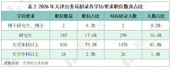 2026年天津公务员招录职位学历要求中,专科学历能够报考的职位仅24