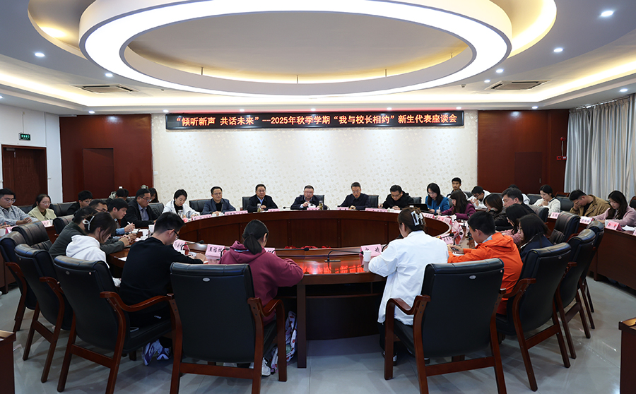 11月5日下午,我校举办“倾听新声 共话未来”——2025年秋季学期“我与校长相约”新生代表座谈会。校领导郑朝贵、王春、曾献功等与35名来自各二级学院的2025级本科生、研究生、留学生代表齐聚一堂,共话成长。