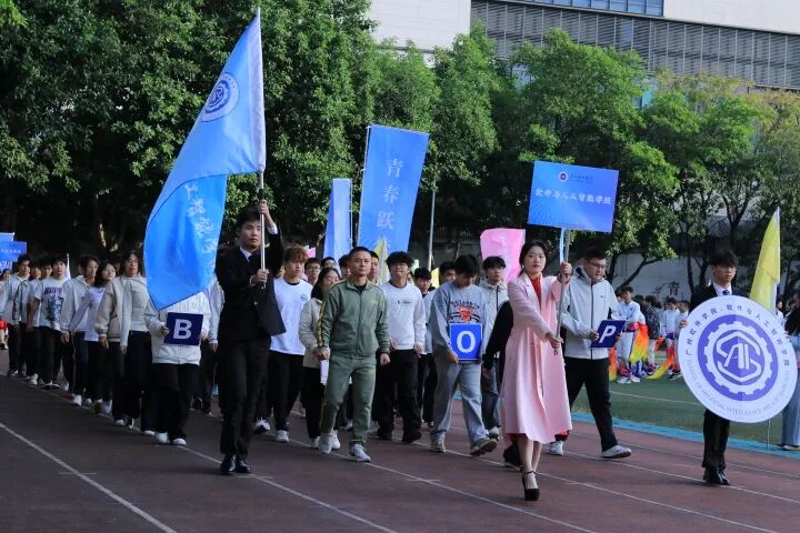 彩旗方队手握各色旗帜,心却向一处汇聚。飘扬的旗帜带着青春舞动的气息,为这激动人心的赛事锦上添花,充满生气。这缤纷色彩既是运动会绚丽篇章的开启,更象征着我校体育项目成绩如全运盛会般百花齐放、生机勃勃。