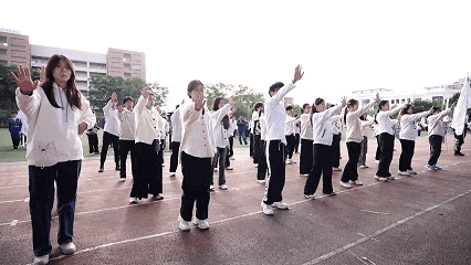 开幕式学生团体操展示(厚德楼六楼俯拍)