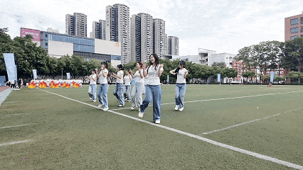 排舞协会成员伴随着明快的音乐节拍,以整齐划一的步伐、富有张力的肢体动作完成了表演,从轻快的恰恰步到舒展的集体队形变换,每一个动作都兼顾了韵律感与协作性,传递出广软学子积极向上的精神风貌。电子信息与控制工程学院学生代表以“扇聚荣光”为主题的表演,将传统美学与青春活力交织,为运动会赛场铺就了一幅灵动的视觉画卷伴随着悠扬而富有节奏的旋律,以青春的肢体语言诠释了体育精神的凝聚力,传递着广软学子的协作意识与集体荣誉感。