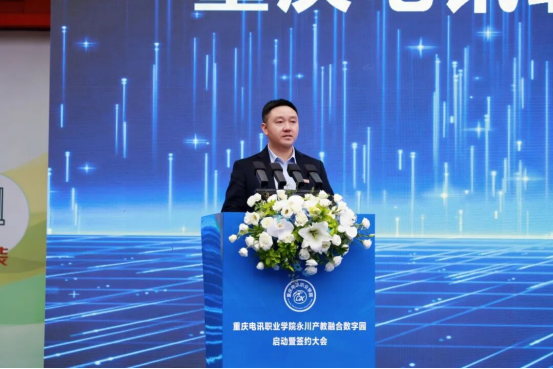 学校党委书记、政府督导专员兰海涛在讲话中指出,产教融合数字园的建设是政府统筹引导、企业主动参与、学校积极作为的多方合力成果。他期望以此为纽带,健全 “人才共育、过程共管、成果共享” 长效机制,着力打造具有示范意义的产教融合 “电讯经验”。