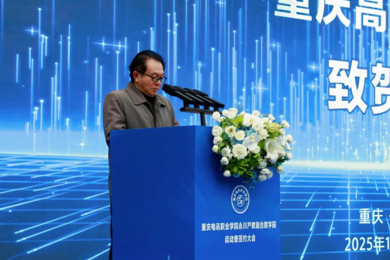 15时,活动正式拉开帷幕。重庆电讯职业学院校长栗玉侠在致辞中强调,数字园的建成是学院深化职业教育改革、服务地方经济的重要举措。他指出,园区将依托学院康养护理专业优势,聚焦AI赋能,打造集人才培养、技术研发、成果转化于一体的产教融合平台,为区域产业升级注入新动能。