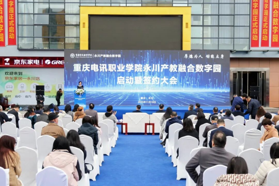 11月18日下午,重庆电讯职业学院永川产教融合数字园启动暨签约大会在永川产教融合数字园广场隆重举行。