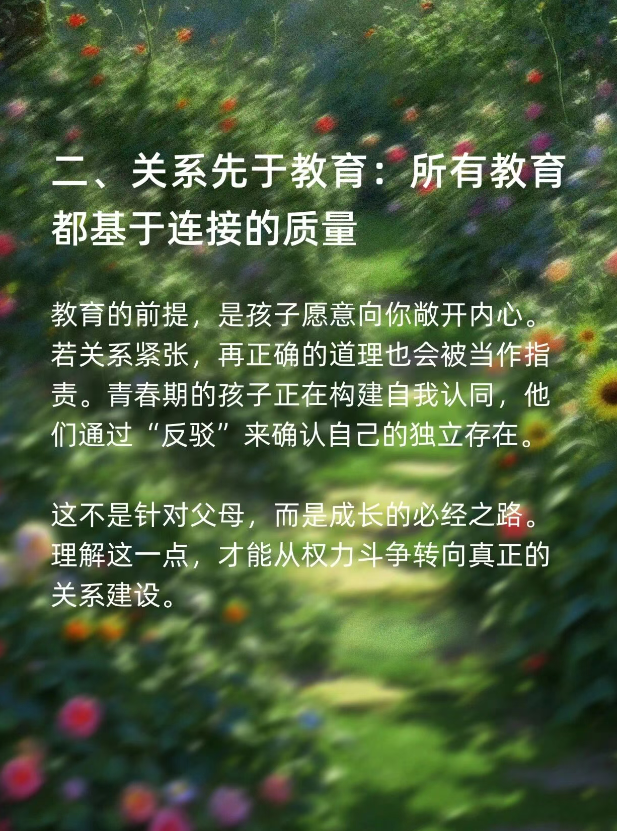 当沟通渐渐被沉默取代,当叮嘱常常以争执收场,许多父母困惑于青春期孩子的“不听话”。其实,行为的背后往往是关系的信号。这篇笔记想和你探讨:如何透过表象,看见孩子真正需要的是什么。或许,解决问题的关键不在如何“管教”,而在如何“连接”。