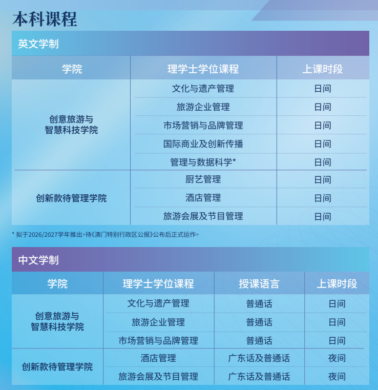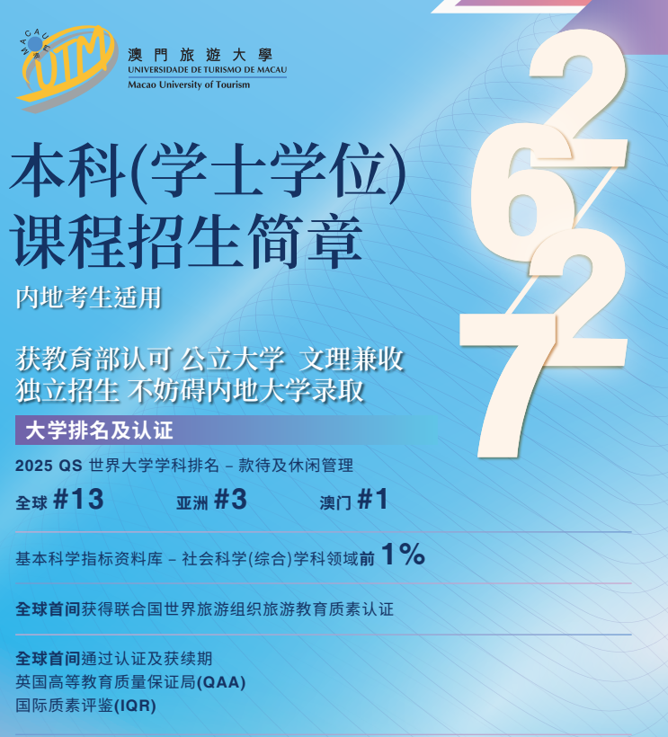 2026/27澳门旅游大学本科(学士学位)课程招生简章