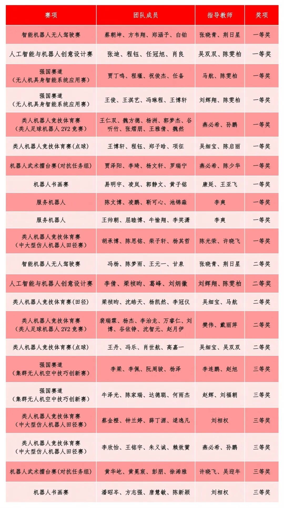 在激烈角逐中,北京信息科技大学参赛队表现亮眼,共斩获一等奖11项、二等奖5项,三等奖6项。其中,在类人机器人足球2V2竞赛、无人机具身智能系统应用赛中、服务机器人赛中,以绝对优势包揽各赛项前两名!