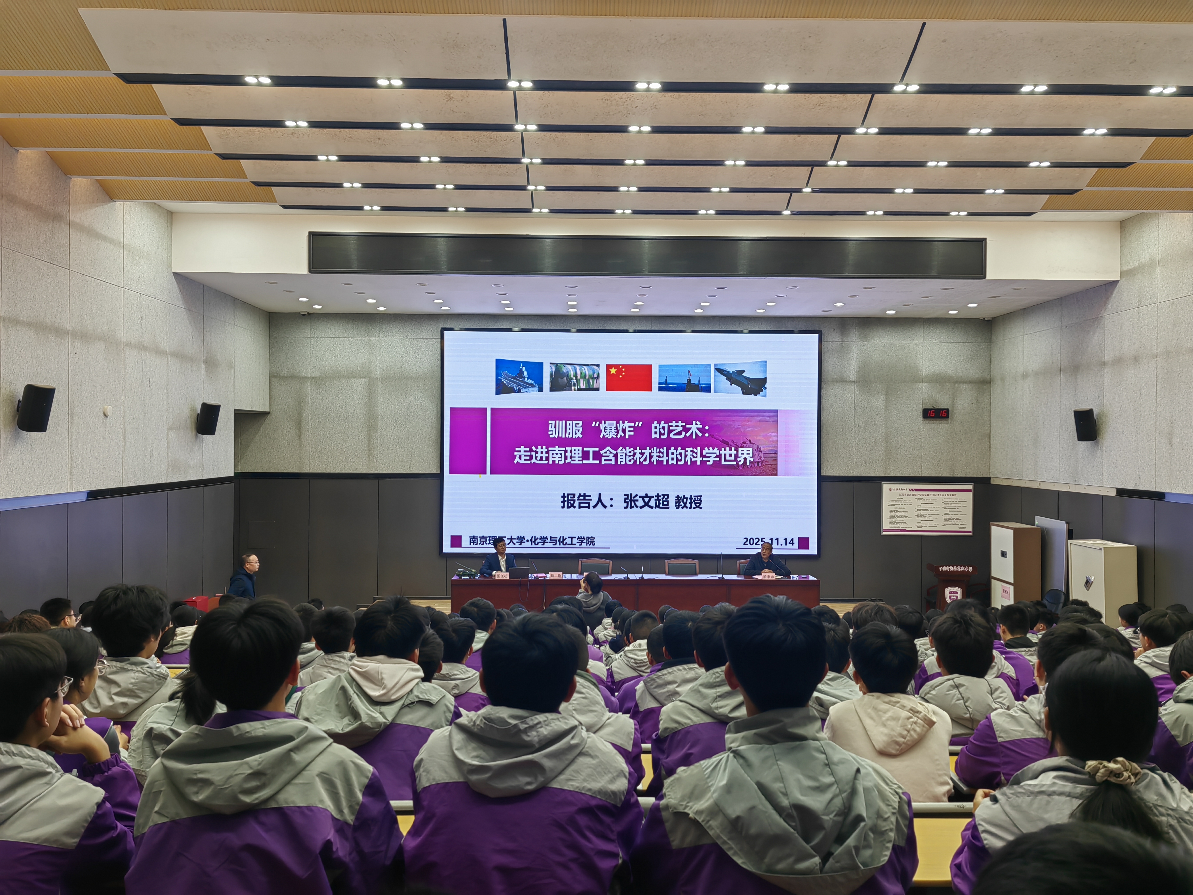 聘任仪式后,张文超教授受邀为同学们带来《驯服“爆炸”的艺术——走进南理工含能材料的科学世界》专题讲座,以通俗易懂的语言解析专业原理,用生动案例展现科技魅力,成功点燃现场学子的科学探索热情。