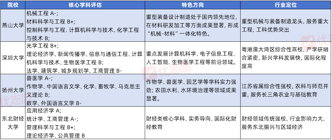 燕山大学作为哈工大血脉传承者、原“机械四小龙”,它的机械工程学科稳居全国顶尖(A-),在重型机械、冶金装备等领域实力硬核,四方共建的背景让科研资源拉满,并且院校扎根环渤海工业带,与地方重工企业产业联动,让实习就业无忧。深圳大学堪称“逆袭典范”,北京大学、清华大学援建起步,扎根深圳科技园,与区域数字产业深度适配,创新创业教育全国领先!