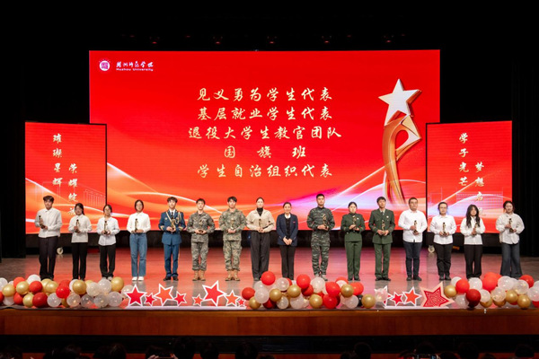 本次盛典围绕“循光·明体之星”“聚光·达用之星”“闪光·荣耀之星”三个篇章,整合学校荣誉体系,分别表彰了十佳大学生、优秀学生、优秀学生干部、艺体类竞赛获奖学生代表;文明班级、优良学风班、优秀寝室、优秀社团、优秀志愿服务团队等集体代表;升学学生、学术科研、学科竞赛获奖代表;国家奖学金、省政府奖学金、校长奖学金获奖学生代表;见义勇为学生、基层就业学生、退役大学生教官、国旗班、学生自治组织学生代表。