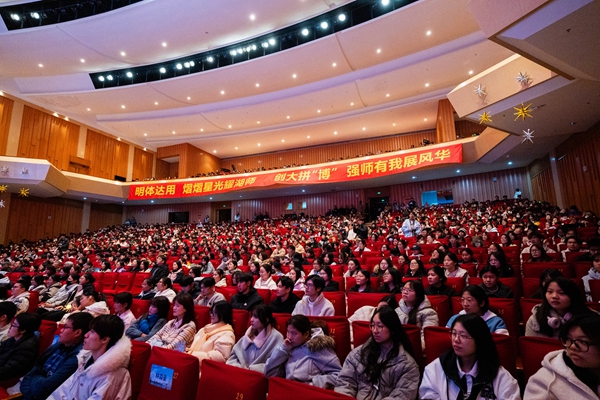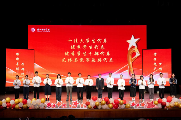 许慧霞在讲话中表示,过去的一年,广大湖师学子坚持德智体美劳全面发展,在专业学习、学科竞赛、文体活动、社会服务等各方面发光发热,用青春朝气诠释了新时代青年的责任与担当。她指出,点亮星辰,需要同学们看见世界,锚定时代方位;看见自己,明确成长坐标;看见彼此,凝聚奋进力量。学校永远是同学们的“星光驿站”,希望全体同学带着星辰之志,让青春在为祖国、为人民的奉献中绽放最美光彩。