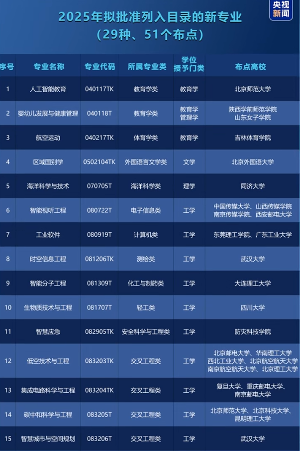 2025年4月22日,教育部重磅发布《普通高等学校本科专业目录(2025年)》,这一消息在教育界、高校以及广大考生和家长群体中掀起巨大波澜。此次专业目录的更新,绝非简单的增减,而是一场关乎国家战略、科技前沿、市场需求以及人才培养模式的重大变革。这背后,究竟隐藏着怎样的战略布局与时代机遇?让我们一探究竟。