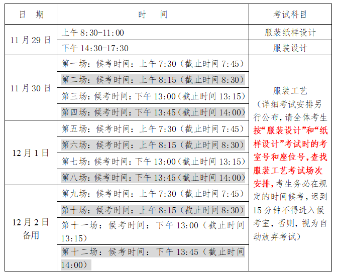 服装工艺考试:考生须自带钢笔或黑色水性笔、铅笔、大小剪刀、厘米尺、锥子、画粉。