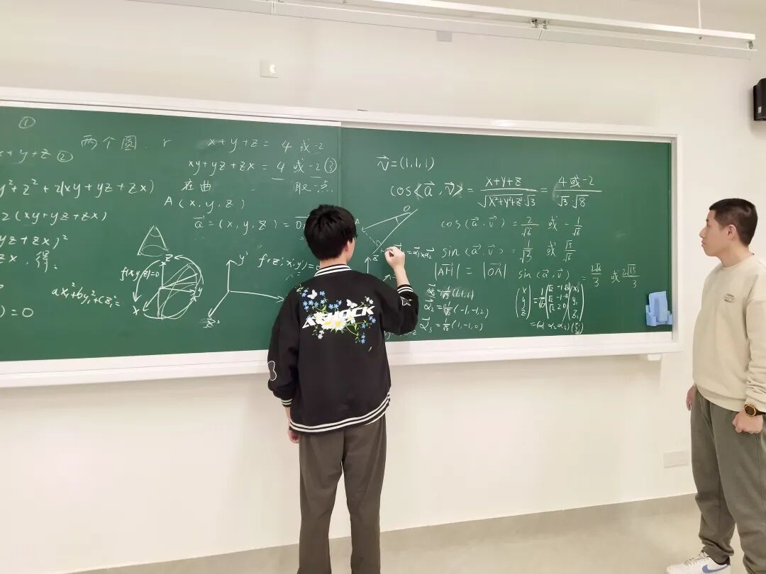 2024年,在老师的建议下,唐鹏飞牵头成立了数学竞赛社团,和社员们一起自主找题、轮流出题讲解,在摸爬滚打中积累经验。社团活动中,同学们在交流研讨中碰撞思维火花,彼此分享解题思路,规避常见误区。“我们能互相检验解题思路,还能锻炼数学表达的严谨性。”唐鹏飞坦言,在为大一同学讲解竞赛技巧的过程中,自己的知识体系也得到进一步巩固。这种“教学相长”的社团氛围,不仅成为学子们备赛路上的重要助力,更让学科竞赛的影响力持续辐射开来。